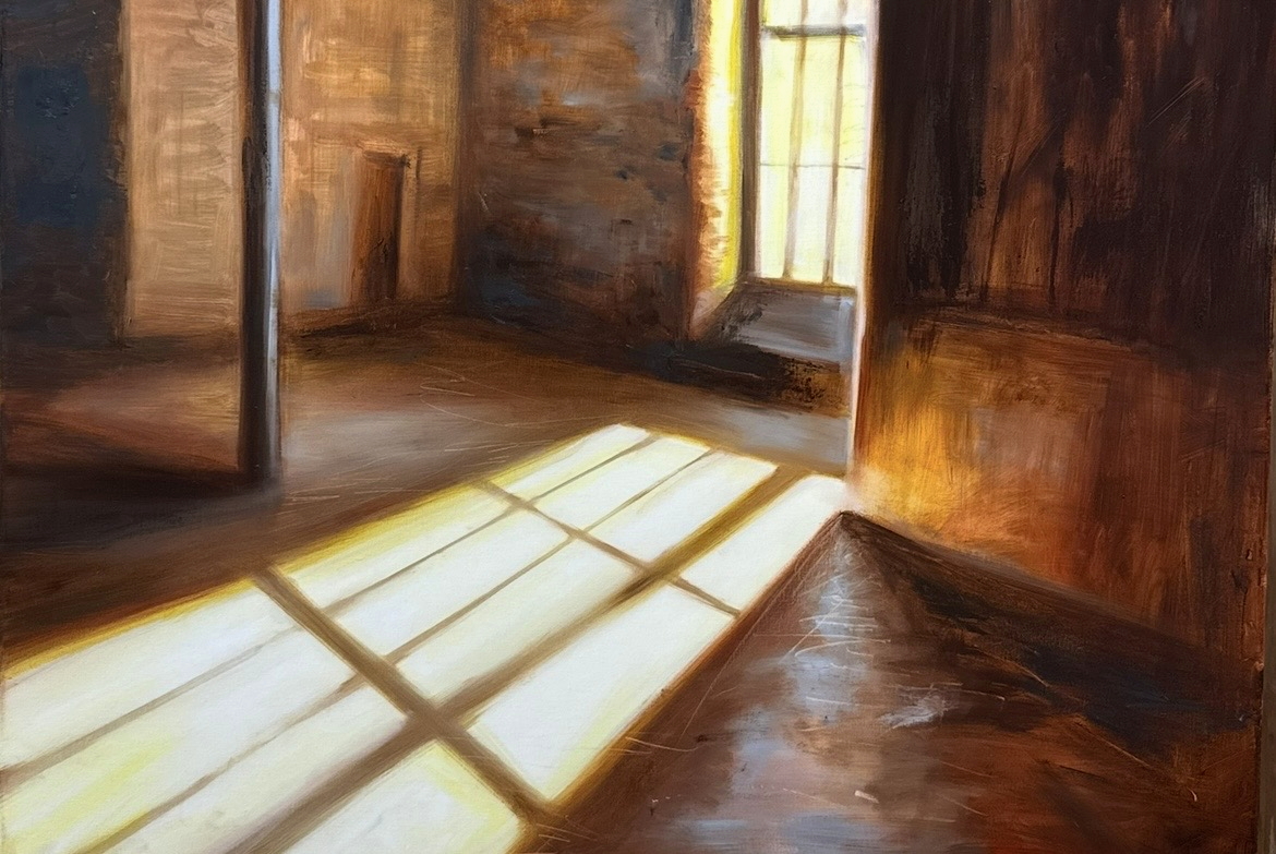 Last month I painted a few rather large oils of interiors of the loft where I live (new for me) and that was fun and fast and I even sold two of them. (detail above) I did them to actually hang in the loft where I am living and while I was at it I convinced the loft to take down the awful artwork we had up everywhere and I curated a showing of work from all the studio artists that have working studio spaces like me in the Greenville Center for Creative Arts next door. The Opening reception is tomorrow night from 6-8 pm, so if you are near Greenville, please pop by the Brandon Mill Loft (25 Draper Street) for music, food, wine and an opera performance from a resident at 7:00 who is opening an opera company in Greenville. Who knew I liked to curate artwork as well as paint it?